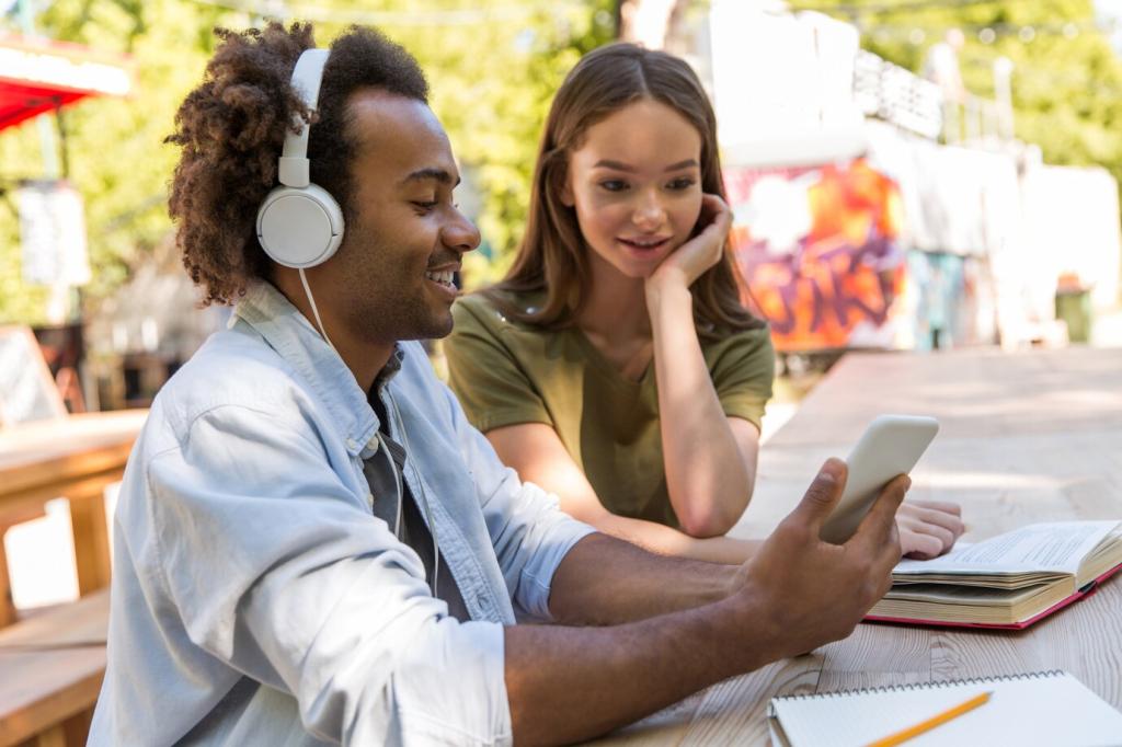 Kurze Clips, dialogische Lesetexte, visuelle Hinweise: Micro‑Input erleichtert Aufnahme. Lehrerin Marta reduzierte ihre Videos auf 90 Sekunden und sah, wie Lernende mehr Details aufgriffen und aktiv nachfragten.